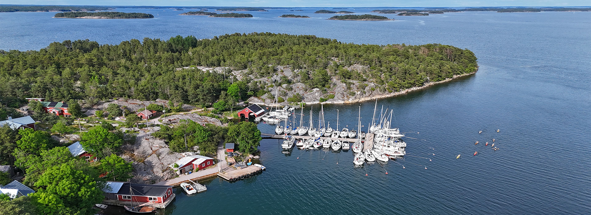 Auf dieser kleinen Schäre kann man vielen sportlichen Aktivitäten nachgehen. Neben Spaziergängen, saunen und auf die Felsen klettern, gibt ein Beachvolleyball-Feld und einen Kajak-Verleih.